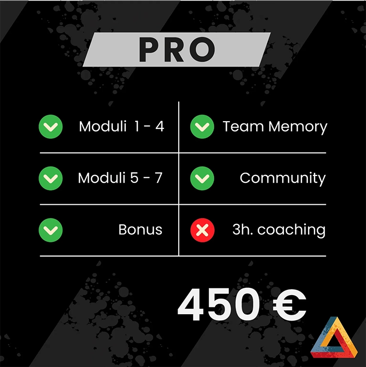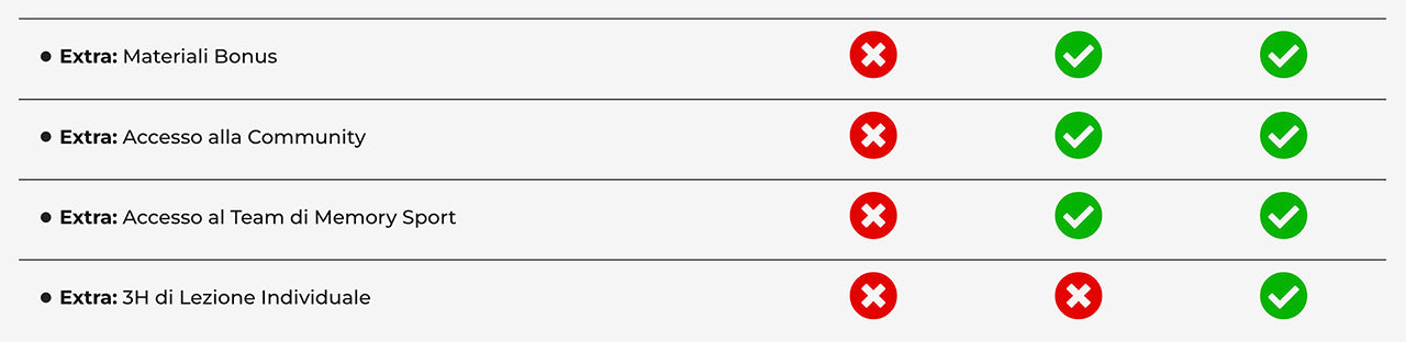 BONUS: con l’acquisto del corso si ha l’accesso gratuito al Team dei Memory Sports allenato direttamente da Andrea Muzii per chiunque abbia intenzione di intraprendere questa strada.